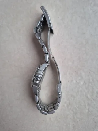 Reloj de pulsera con un diseño delicado y elegante. - Esfera blanca con detalles de mariposas. - Correa de eslabones plateada. - Caja original incluida. Reloj de comunión usado solo el día del evento.