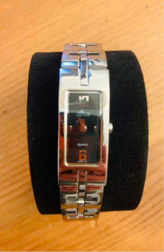 *SÓLO ENTREGA EN MANO *SÓLO PAGO EN EFECTIVO *ENTREGO METRO AVENIDA DE LA ILUSTRACIÓN, LÍNEA 7 Reloj de acero de señora Lotus con movimiento de cuarzo analógico. Cristal mineral, esfera de color plata. Caja de acero cuadrada y pulsera de acero, cierre con pulsadores laterales. SOLO UN DÍA DE USO, conserva caja original, certificado de origen y piezas de recambio