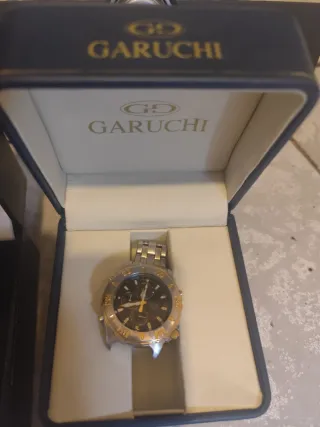 Lotus caballero referencia 15753, 5atm wáter resistant, all stainless steelReloj Lotus caballero coleccion Enjoy "Poom" con movimiento de cuarzo analgico, calendario y cronmetro. Caja de acero cuadrada, cristal mineral, esfera de color negra y bronce oscuro. Pulsera de piel marron oscuro con hebilla. Water resistant 50m Lotus caballero. Segunda mano Muy bien conservado. Propietario joyero relojero. Se entrega revisado con puesta a punto en perfecto funcionamiento.Precio original 225 €