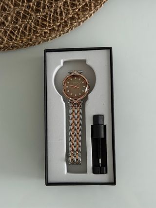 Nuevo sin estrenar y con sus plásticos protectores. Reloj analógico para mujer con correa de metal. Reloj de cuarzo. No hago envíos.