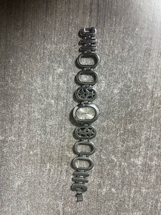 Original Elegante reloj con un diseño distintivo. - Esfera cuadrada con detalles brillantes. - Pulsera con eslabones cuadrados y adornos. - Logo de la marca integrado en la pulsera. Hay que cambiar cristal y poner brillos