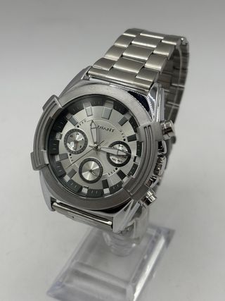 Elegante reloj de pulsera con un diseño moderno y sofisticado. - Correa de eslabones plateados. - Bisel con detalles. - Esfera con múltiples indicadores.