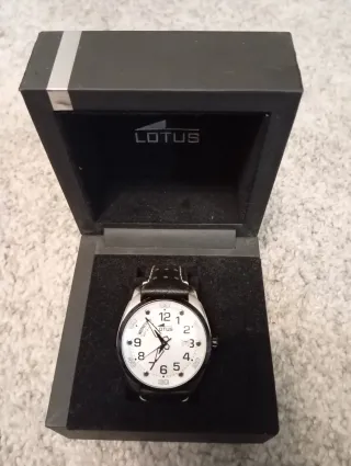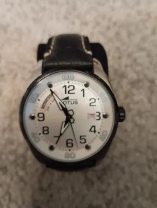 Reloj de pulsera Lotus con un diseño elegante y moderno. - Esfera de color azul profundo. - Detalles en tono dorado en la caja y las manecillas. - Correa de piel con textura. - Ventana de fecha visible. - Pila recién cambiada - Resistente al agua 30m -Correa, hebillas, etc originales. Con señales de uso pero originales.