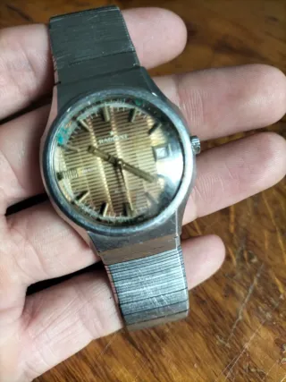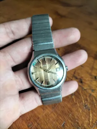 Elegante reloj de pulsera con un diseño sofisticado. - Esfera redonda con detalles dorados. - Correa de malla metálica. - Cierre ajustable. se acepta oferta