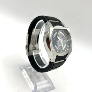 Elegante reloj de pulsera para hombre con un diseño moderno y llamativo. - Esfera negra con detalles plateados. - Correa de eslabones plateada. - Resistente al agua hasta 10 BAR.