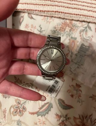 Reloj de pulsera plateado con pedrería