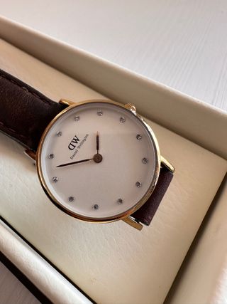 Reloj de pulsera original cuarzo Daniel Wellington 26 mm Con cristales Swarovski Correa de piel marrón Hay que cambiar la pila