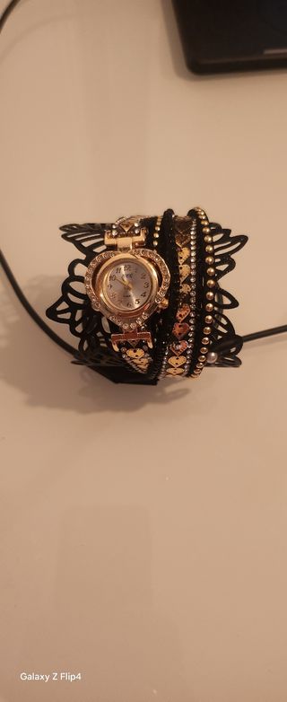 Elegante reloj de pulsera con detalles en dorado y negro. - Diseño moderno y llamativo. - Correa con acabado de calidad. El reloj está a mi nombre viene con su caja tengo papeles tengo todo se vende solo hoy por ese precio 90