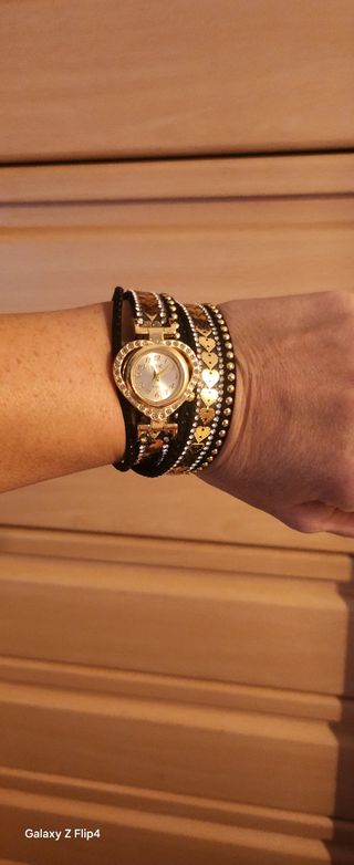 Pulsera Reloj Corazón Dorado y Negro