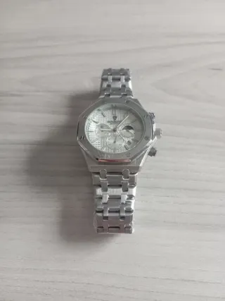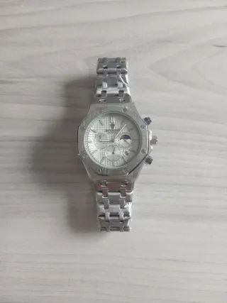 Elegante y formal reloj de pulsera con un diseño moderno y minimalista. - Esfera plateada con detalles sutiles. - Correa de eslabones metálicos. - Cierre de seguridad.