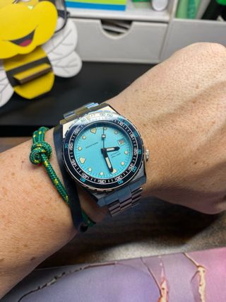 Reloj de pulsera Seestern SUB600T con esfera azul turquesa - Bisel giratorio ceramico - Movimiento Seiko NH35A - Cristal de Zafiro - Resistencia 20 atm - Diametro 40 mm - Potente Luminous Super BGW9