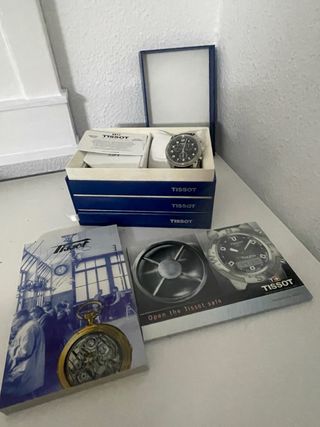 Reloj de pulsera Tissot con una combinación de colores negro y plateado. - Caja original incluida. - Documentación de Tissot.