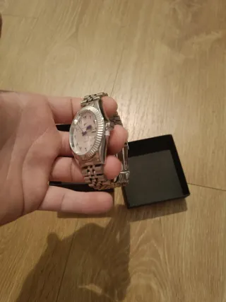 Vendo éste reloj de pulsera de mujer. El estado del reloj es tal cual como se ve en las fotografías del anuncio, tiene ya unos años y evidentemente ha sido usado, lo que digo, está tal como se ve. No dispone de pila y lo doy sin pila por lo que no se si el mecanismo funciona, supongo que sí porque ha estado guardado junto con otros relojes en un armario lejos de agua o de humedad alguna. Destacar que por la manecilla al cambiar la hora se mueve el cuadro de dentro y no atino a que quede fija la manecilla, quien tenga idea de abrirlo supongo que será una tontería puede arreglarlo fácilmente. Por su estado lo vendo en 3 euros.