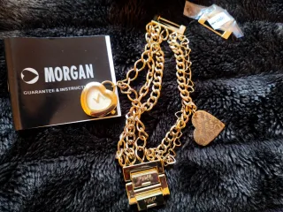 Precioso reloj - pulsera con charm a juego de corazón, de la conocida marca Morgan. En su caja, con el contenido intacto, incluyendo eslabón alargador de muñeca en el cierre. Tiene otro puesto. Se puede ajustar para que quede, de ese modo, más reloj o pulsera. Muy poco uso. Precio de compra: 90 €. Hay que cambiar la pila. Se puede llevar como pulsera únicamente y queda estiloso y elegante. ¡Echa un vistazo al resto de mis artículos!