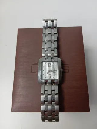 Elegante reloj de pulsera con un diseño clásico. - Brazalete con eslabones cuadrados. - Esfera de forma cuadrada.