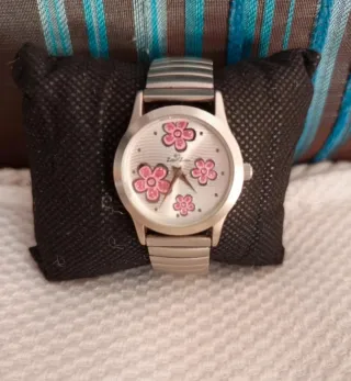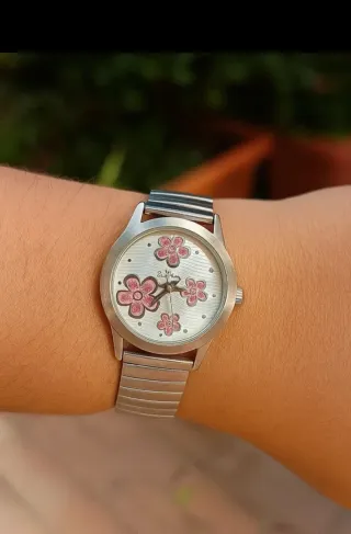 Reloj mujer/niña flores rosa y plata
