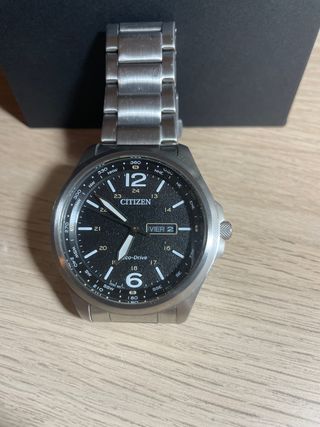 Reloj Citizen con pulsera de acero y esfera negra. - Pulsera de acero. - Esfera negra. - Resistente al agua. - Entrego eslabones - Reloj en garantía, entrego factura.