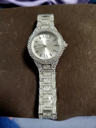 Elegante reloj de mujer con un diseño brillante y llamativo de tamaño mediano. - Bisel y pulsera adornados con circonitas es una verdadera pasada. - Esfera plateada con detalles en números romanos y correa de acero inoxidable. - Ideal para regalar en éstas fiestas anímate.