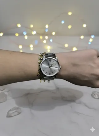 Elegante reloj con esfera plateada y detalles en números romanos. Cuenta con una pulsera metálica a juego. - Tamaño de la caja: 38mm - Diseño clásico y moderno. - Pulsera de eslabones.