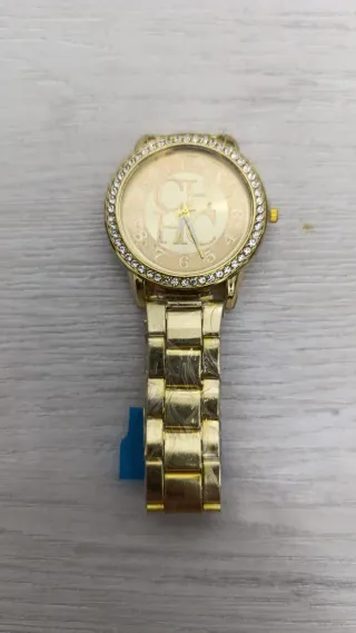 Elegante reloj de pulsera con un acabado dorado brillante. Prácticamente sin uso. Caja de presentación incluida. Reloj de cuarzo.