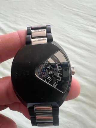 Reloj de pulsera con un diseño moderno y llamativo. - Combinación de colores negro y plateado. - Correa con eslabones metálicos. - Edición Limitada