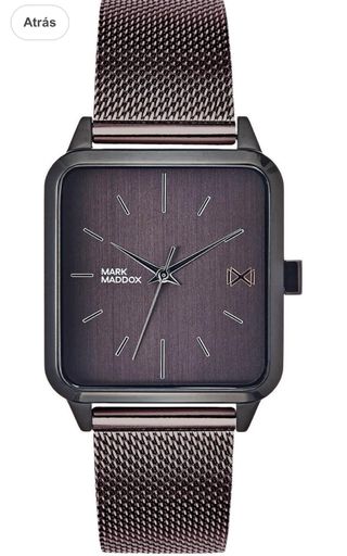 Elegante reloj de pulsera Mark Maddox con diseño cuadrado. - Un año de garantía. - Caja de color gris oscuro. - Correa de malla metálica. - Esfera con acabado cepillado. - Precio original 62€