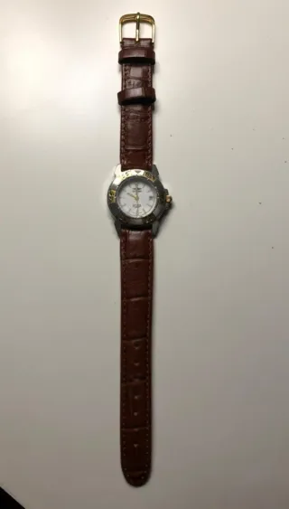 Reloj de pulsera de la marca Sector con correa de cuero. - Esfera blanca. - Bisel con detalles dorados y plateados. - Correa de cuero marrón. - Cierre de hebilla. NOTA: la pila ha sido cambiada el 4 de noviembre 2025. Es considerado un reloj vintage y está muy bien cuidado. ⚠️No acepto cambios⚠️