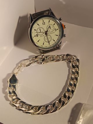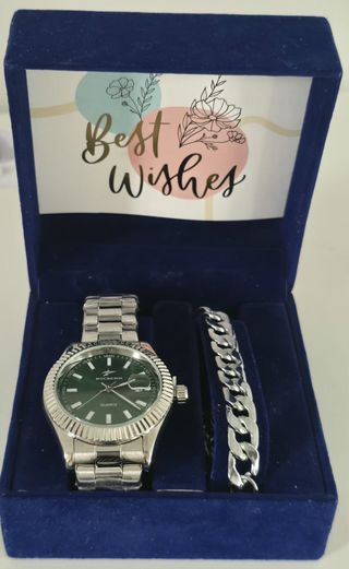 Conjunto de regalo que incluye un reloj y una pulsera. - Color azul. - Ideal para obsequiar.