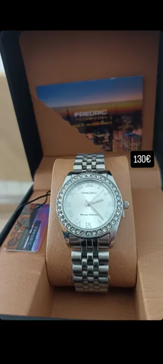 Elegante reloj de pulsera para mujer. Se encuentra en su caja original. - Diseño moderno y sofisticado. - Correa plateada de estilo contemporáneo. - Esfera plateada con detalles brillantes. solo hay que ponerle la pila