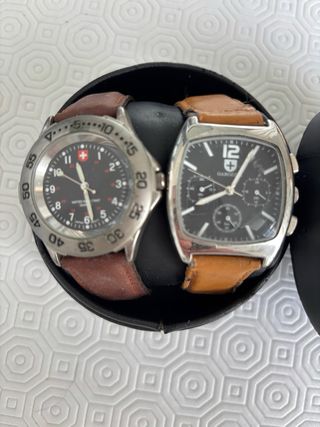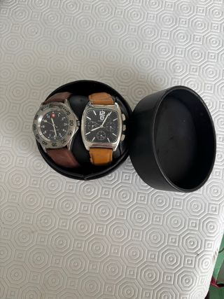Dos relojes de pulsera con sus correas. El de marrón oscuro cuesta 10€. El de marrón claro cuesta 5€. (Tiene la correa rota) Precio negociable.