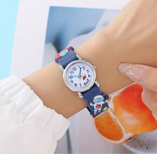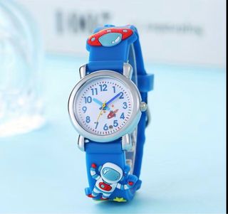 Reloj de pulsera con diseño de astronauta, ideal para jóvenes estudiantes. La correa es de un llamativo color azul con detalles blancos. - Esfera blanca con números claros. - Divertido diseño de astronauta en la correa. - Mecanismo de cuarzo.
