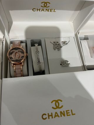 Set de Joyería Chanel: Reloj, Pulsera, Collar y An