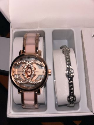 Precioso reloj que se encuentra en excelentes condiciones debido a poco uso. - Diseño elegante y sofisticado. - Ideal para cualquier ocasión. - Cuenta con segundero. - Correa de acero mate con piezas medias brillantes.