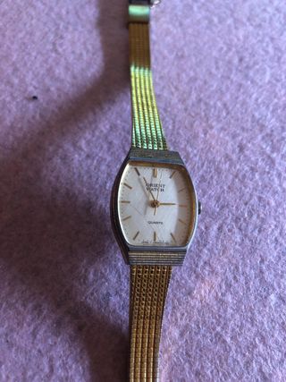 Elegante reloj de pulsera de la marca Orient Watch. - Esfera de color crema. - Correa de malla metálica. - Diseño clásico y atemporal. - Pila para cambiar.