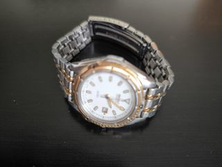 Elegante reloj de pulsera con un diseño bicolor que combina tonos dorados y plateados. Perfecto para añadir un toque de distinción a tu muñeca.Es de pila - Brazalete de eslabones metálicos. - Esfera clara con detalles dorados. - Cierre de seguridad.