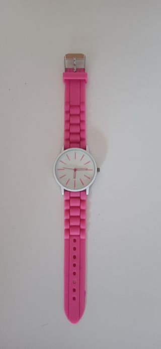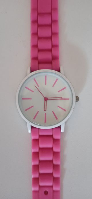 Reloj mujer en perfecto estado y funcionando a la perfeccion - Diseño elegante y sencillo. - Esfera blanca con agujas rosas.