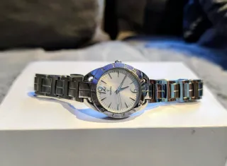 Carcasa - Material de la Carcasa: Acero inoxidable - Forma de la Carcasa: Redondo - Color de la caja: Plata - Cristal: Cristal Mineral Mecanismo - Tipo de Pantalla: Análogo - Mecanismo: Cuarzo - Color de la Esfera: Azul Claro - Color de la Pulsera: Plata - Cierre: Cierre Despegable - Material de la Pulsera: Acero inoxidable Detalles técnicos - Diámetro (sin corona) en mm/pulgada: 37,00 / 1,46 - Altura en mm/pulgada: 10,00 / 0,39 - Resistente al Ague (bar): 10,00 - Ancho de la Pulsera en mm/pulgada: 19,00 / 0,75 - Peso en g/onza: 100,00 / 3,53 Reloj es nuevo con original caja Precio original 120 €