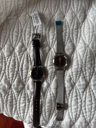 Dos relojes Mark Maddox, uno con correa marrón y otro con malla plateada. - Reloj con correa de cuero marrón. - Reloj con pulsera de malla plateada. Nuevos a estrenar , garantia corte ingles 99 ambos, relejos pequeños 33mm