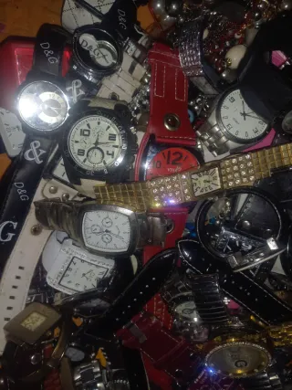 Vendo lote de 60 relojes colllares pulseras ..lo que se mira en las fotos ay 10 fotos de todo ,50€nada de mareantes jente seria ,no acepto pago bizum ni hago envios, pago en persona.