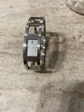 Reloj Calvin Klein en color negro y plata. Es un reloj elegante y discreto, perfecto para el día a día. - Tiene una correa de malla metálica. - Es de cuarzo. Le falta pila y el cierre de la correa