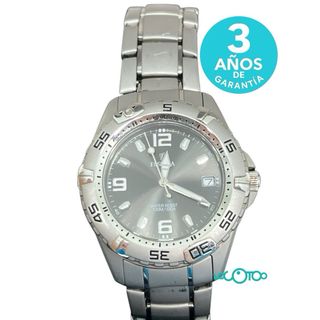 Reloj de pulsera Calypso con diseño deportivo y funcional. (Hay que cambiarle la pila) - Esfera plateada con detalles en azul. - Correa de eslabones metálicos. - Resistencia al agua de 10 ATM.