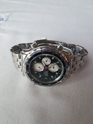 Reloj deportivo Racer Cronografo en acero. Es un reloj elegante y en buenas condiciones. Original y tasado por perito de la Agencia Tributaria. Procede de embargo Judicial. - Cronografo multifuncion - Resistente al agua (100m) - Brazalete de acero inoxidable