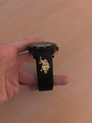 Reloj deportivo con un diseño llamativo y moderno. - Correa de silicona negra. - Esfera con detalles en naranja y blanco. - Logo de U.S. Polo Assn. en la correa y la esfera.