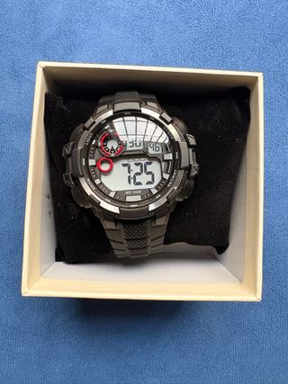 Reloj deportivo para caballero con un diseño moderno y funcional. Perfecto para el día a día. - Correa de material resistente. - Esfera digital clara y legible. - Resistente al agua WR50M. - Alarma y cronógrafo. Hago envíos únicamente por la plataforma de wallapop.