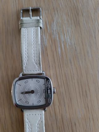 reloj dkny color blanco, correa desgastada, no tiene pila