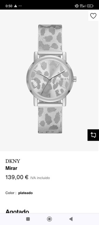 Elegante reloj DKNY con un diseño llamativo. Precio original 139 - Correa de malla con estampado. - Esfera plateada.