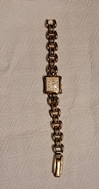 Elegante reloj Duward Diseño clásico y sofisticado. hecho en acero inoxidable con un acabado en tono dorado Ref:92128 diámetro de la caja Largo 36 mm Ancho 35mm pila recién recién cambiada. esfera blanca con número dorados y las agujas. precio no negociable sólo gente interesada