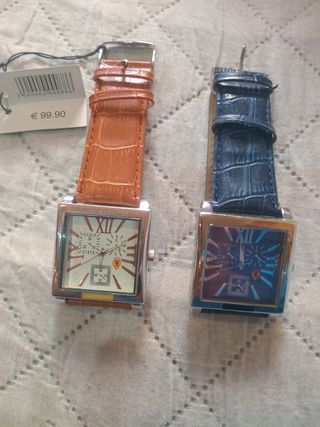 Dos relojes en azul y marrón nuevos marca Ferrari orijinal