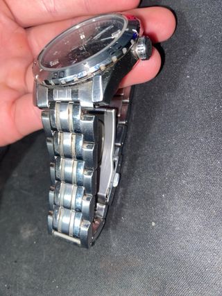 Elegante reloj Festina con diseño deportivo y moderno. tiene una cierre algo suelto de ahi el precio - Esfera negra con detalles plateados. - Brazalete de acero inoxidable. - Bisel con marcadores de tiempo
