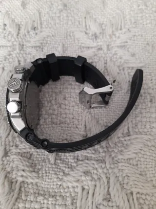 Elegante y deportivo Reloj Festina Multifunción original. Reloj de caballero con un diseño potente y moderno, ideal tanto para uso diario como para ocasiones especiales. Destaca por su esfera plateada con acabado cepillado y su cómodo brazalete de resina/caucho negro de alta resistencia. Características principales: • Marca: Festina (Original). • Modelo: Multifunción (Día de la semana, fecha y formato 24h en subesferas). • Esfera: Color plata con índices aplicados y agujas luminiscentes. • Bisel: Diseño estriado exclusivo que le aporta mucha personalidad. • Correa: Caucho negro original en perfecto estado, muy cómoda y duradera.
